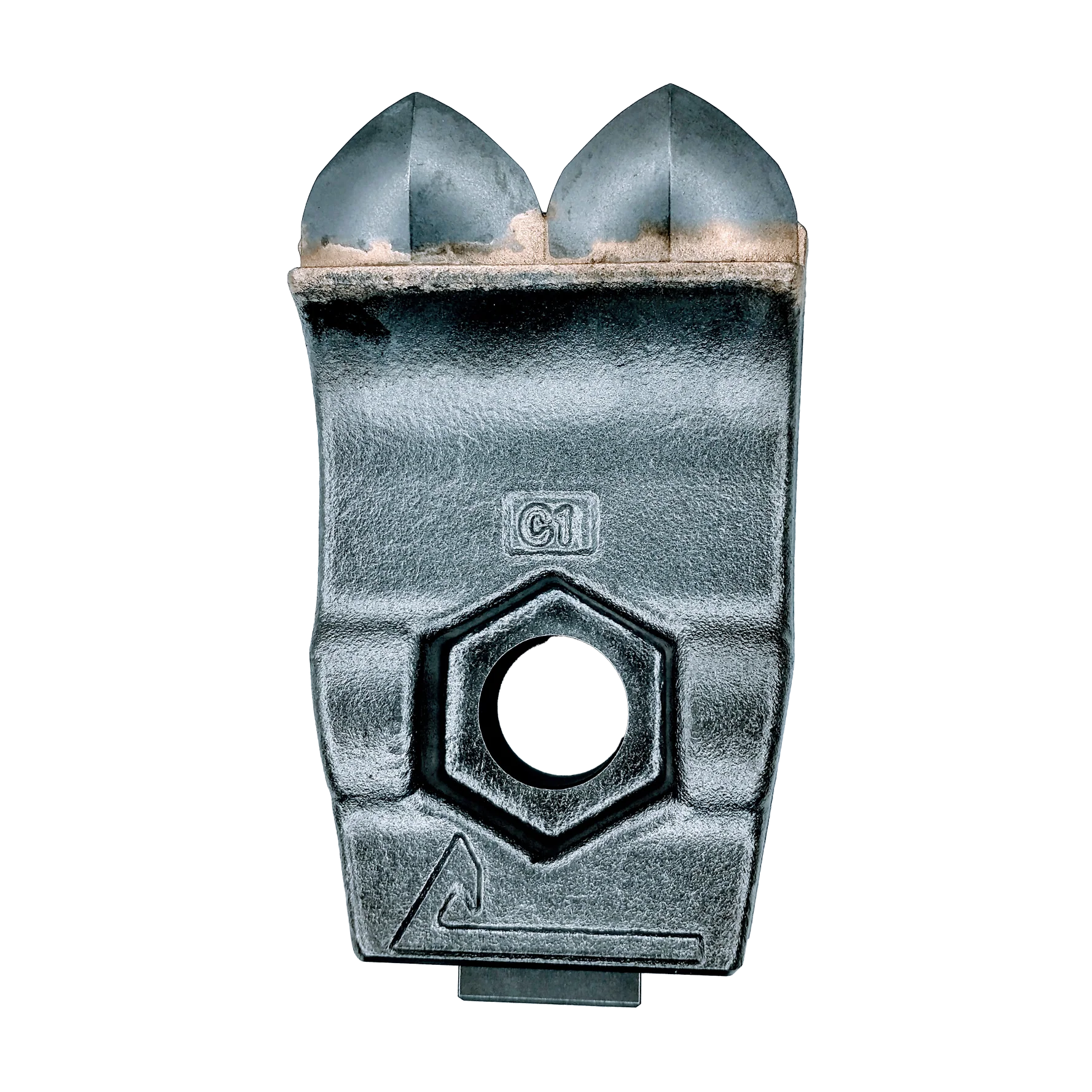 Spike aftermarket replacement mulcher hammer tooth, two large carbide design improves suction and cutting action;